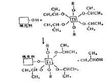 可以避免四價鈦酸酯在某些體系中的副反應(yīng),如在聚酯中的酯交換反應(yīng),在環(huán)氧樹脂中與羥基的反應(yīng),在聚氨酯中與聚醇或氰酸酯的反應(yīng)等。該類偶聯(lián)劑在許多填充劑體系中都適用,有良好的偶聯(lián)效果,其偶聯(lián)機(jī)理與單烷氧基型類似: